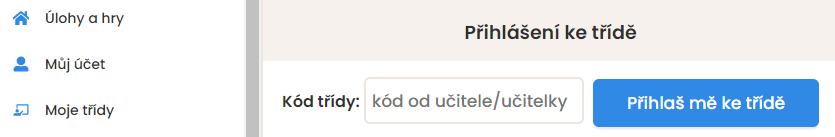 Po vytvoření profilu v záložce Moje třídy zadá žák unikátní kód třídy, který mu sdělíte.