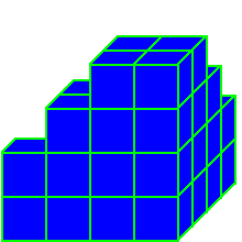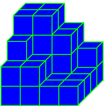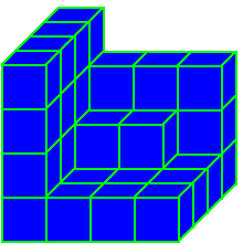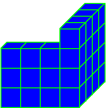 Visto sia da davanti che da dietro, nell’immagine c’è il resto di un cubo composto dai cubetti piccoli. Conta quanti cubetti sono stati tolti dal cubo intero.