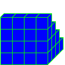 Duża kostka składa się z 4 x 4 x 4 = 64 kostki.
